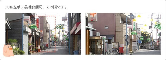 近鉄大阪線「長瀬駅」より徒歩1分。