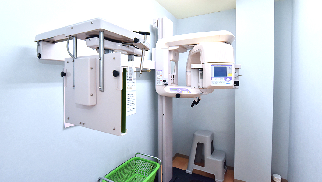お口の状態をしっかり把握するため、専用のレントゲン室を備えています。被ばく線量の少ないデジタルレントゲンがございます。